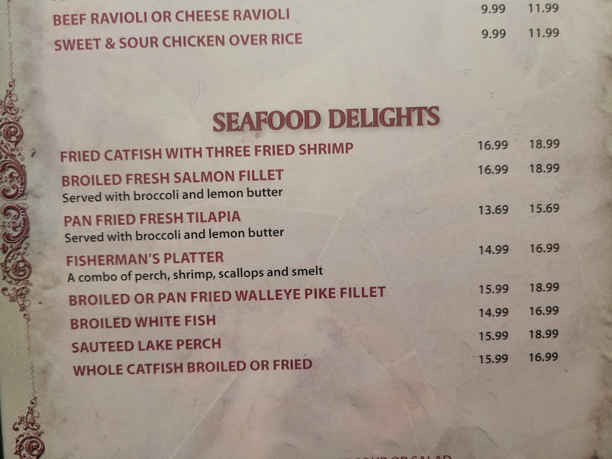 - Deep Fried Breaded Catfish Fillet - A satisfying choice at $10.19.